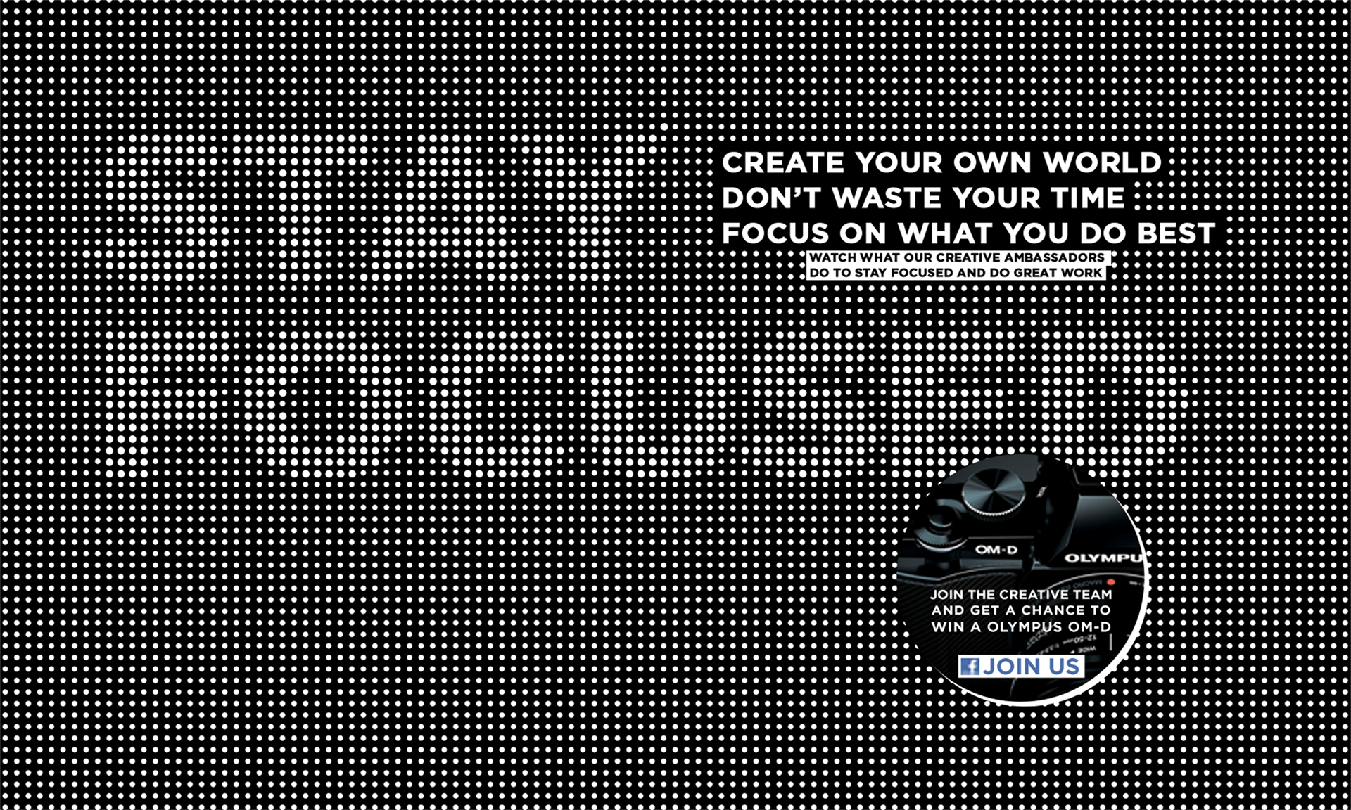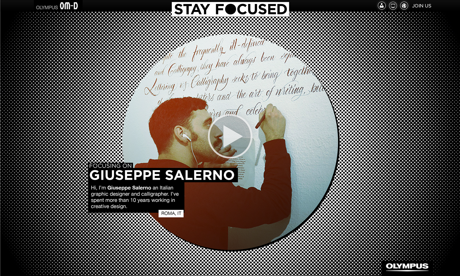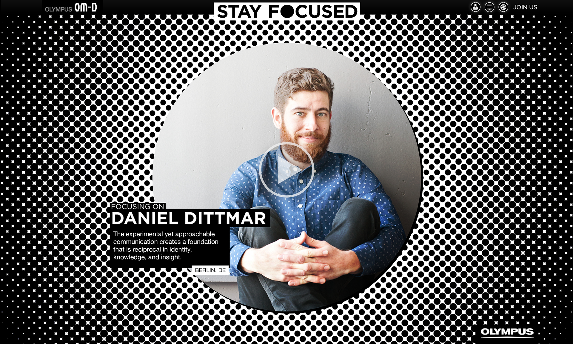 In March 2013, I was hired by St. Elmo’s Berlin to come up with a design concept for a new Olympus camera. The focus of this pitch was on creative people that need a small camera that is better than their cellphone and smaller than a full DSLR. This was the market Olympus OMD was going for, and I had to find a way to target them. Stay Focused was the key theme and the visual I was looking for was to use graphical elements from the printing process as a way of playing with the visual focal point. This way, I could play around with the focus, reinforce the message and have vital visual elements for the other advertising elements. The Stay Focused website would be filled with interviews of key creative people showing how their lives got better after they started using the new Olympus OMD cameras. Below you can see the designers and creative people we were looking forward to including on this campaign. None of them was contacted, and they never saw this pitc
